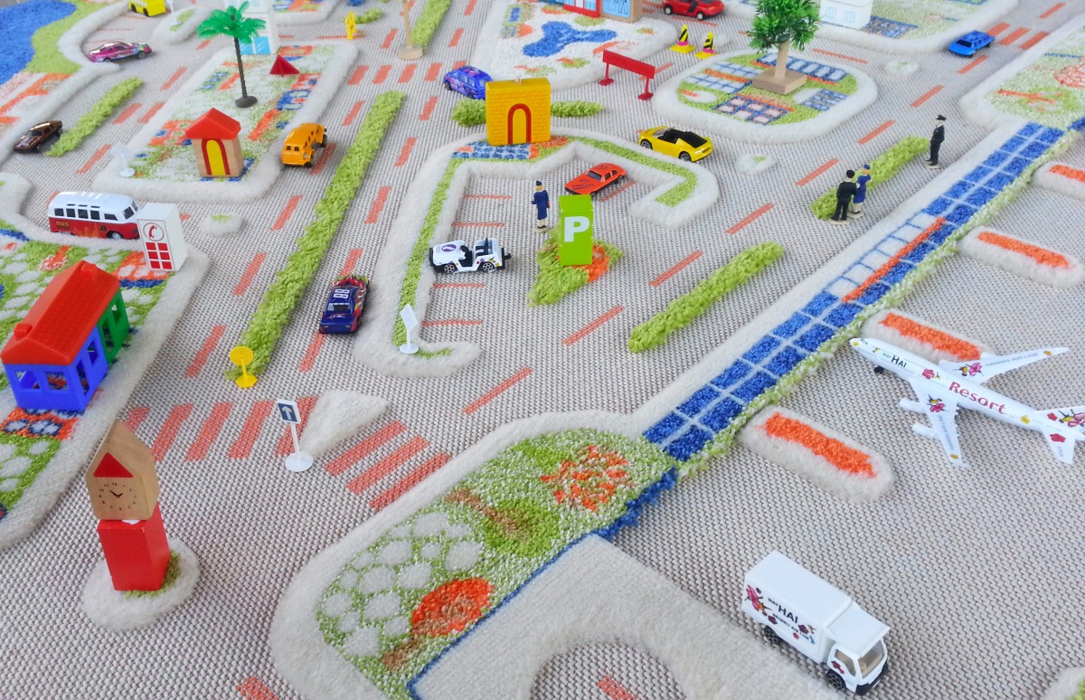 Spielteppich Stadt „Mini City“ im dreidimensionalen Design. Auf diesem Kinderteppich sind eine Stadt, Flughafen, Meer mit Hafen und Strand abgebildet. Ihre Kinder können am Flughafenterminal direkt in ein Auto steigen, echtes Großstadt Flair erkunden und einen Ausflug zum großen Hafen unternehmen. Zwischendurch kann natürlich im örtlichen Supermarkt eingekauft, der Freund im Krankenhaus besucht und das Auto vollgetankt werden.